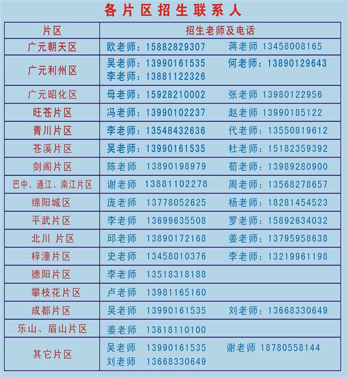 各片区招生老师