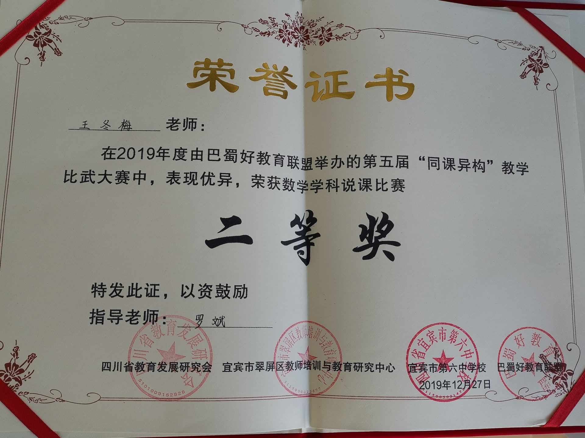 2019年12月25日--27日,在四川省宜宾市第六中学校举行的第五届“中国好教育”联盟2019年度“同课异构”冠军总决赛巴蜀联盟赛区预选赛上,江油中学教师再创佳绩,美名远扬。