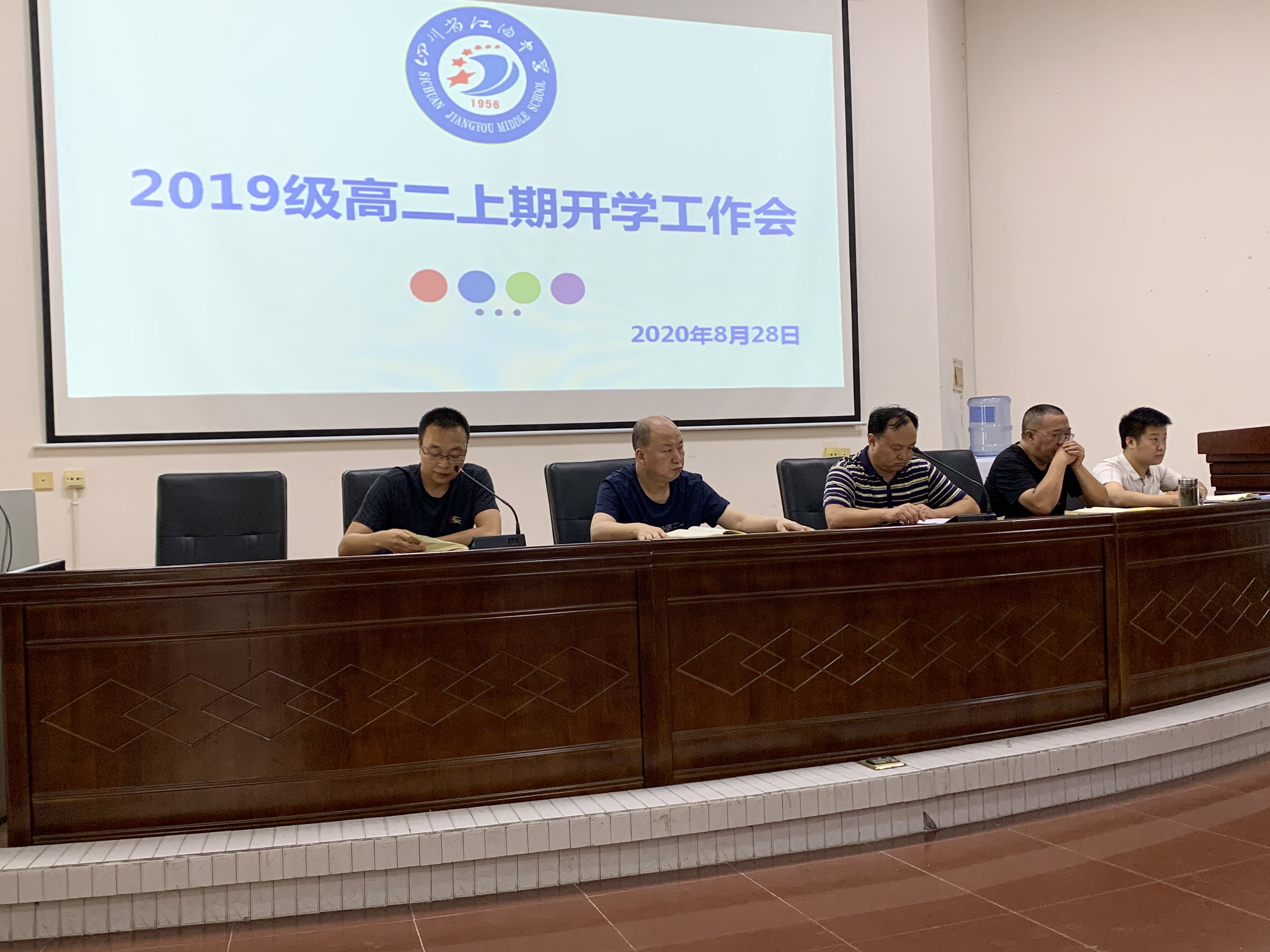 8月28日下午,江油中学高2019级上期开学工作会在学校第一学术厅召开,高2019级全体领导、教师参加会议,年级主任沈在国主持会议。