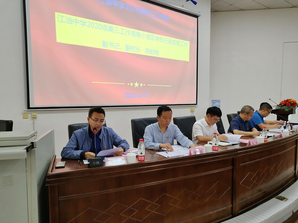 会上,学校副书记、副校长陈时刚宣读成立2020级高三领导小组的决定及行政包班工作要求。