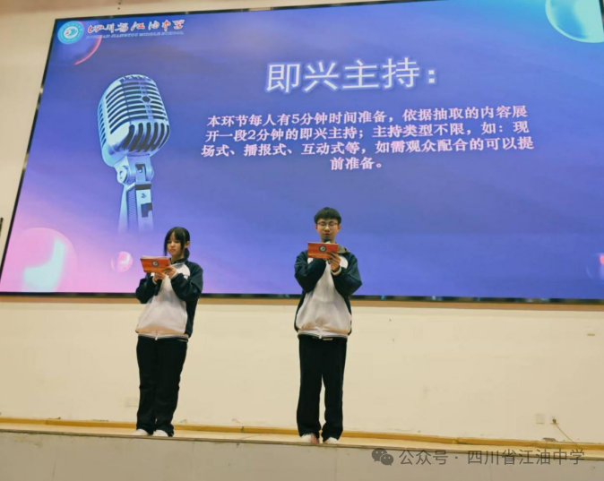 此次校园主持人比赛不仅为同学们提供了一个展示自我、锻炼能力的平台,更点燃了大家对语言艺术的热爱,营造了积极向上的校园文化氛围。相信江油中学的学子们将继续承载着梦想与激情,在更广阔的舞台上发出更加璀璨的光芒!